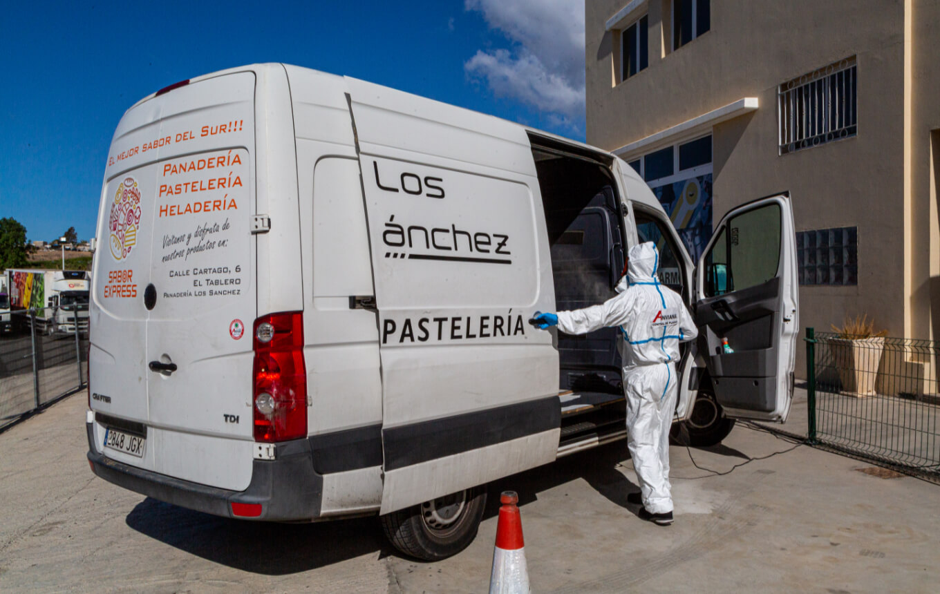 Anviana puede desinfectar espacios, vehículos e instalaciones aplicando un desinfectante de amplio espectro actuando por contacto directo y nebulización, accediendo a todas las superficies y zonas de difícil acceso, logrando la máxima efectividad y el mínimo tiempo de inactividad para el negocio.